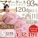 【スーパーDEALポイント20%還元】マザーグース 羽毛布団 シングル 西川 布団カバー付 マザーホワイトグースダウン93% 1.1kg入り 420dp 羽毛掛け布団 羽毛ふとん 昭和西川 日本製 立